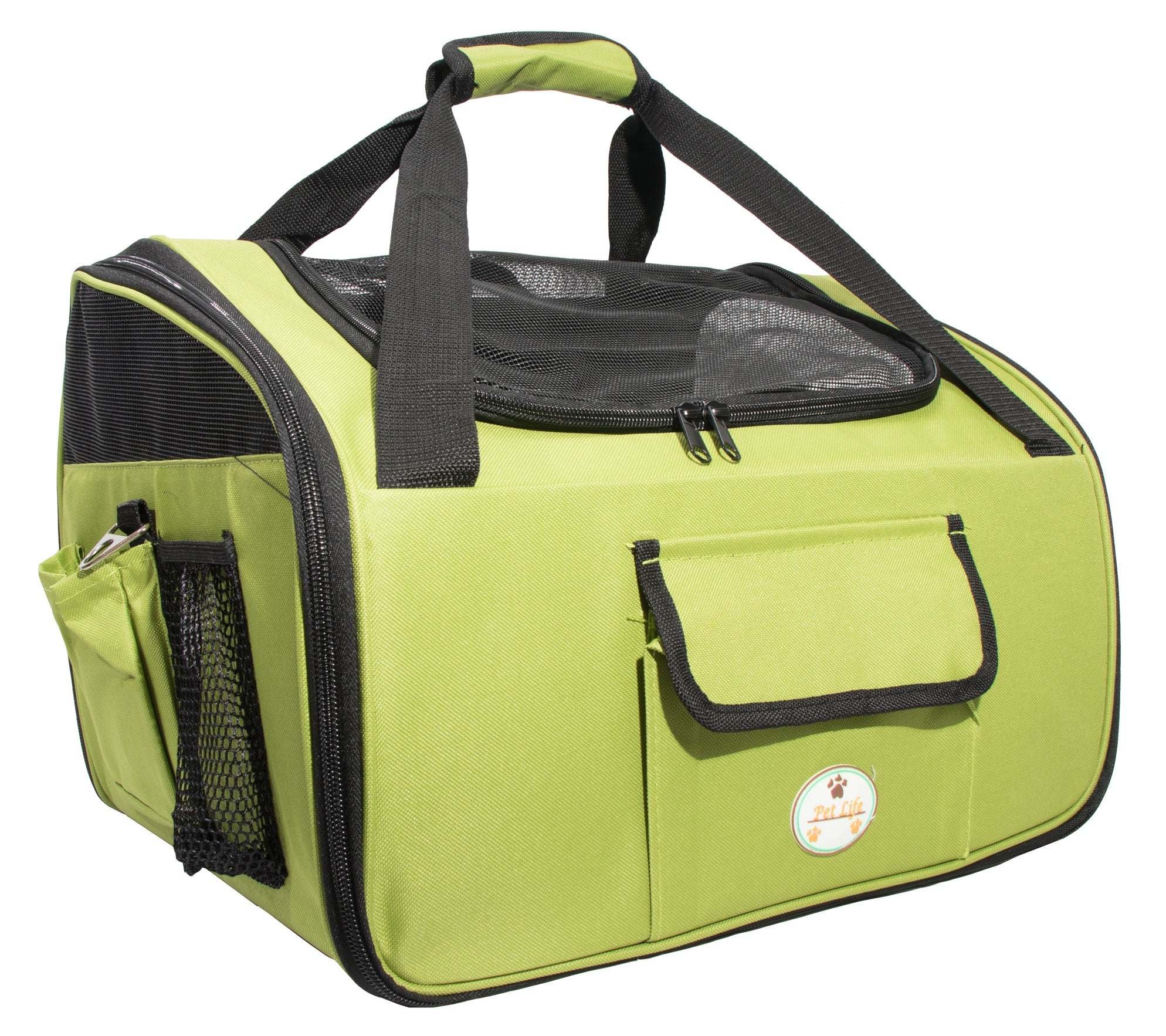 The Pet Life 'Ultra-Lock' Wire-Folding Collapsible Dog Car Seat and Multi-Purposeful Convertible Dog Carrier is composed of High-Grade Tough Nylon Fabrics making it more durable. This Dog Car Seat Carrier Features a Zippered Mesh Sunroof on the top. In addition, you get a Front Nylon Velcro Pouch along with a Dual Sided Nylon Pouch and a Mesh Bottle Holder. Both sides of this Pet Car Seat Feature Buckles that allow you to connect it to any Nylon Car Seat straps. They securely wrap around for added safety and support. Additionally, this Dog Car Seat Zips Open from Front to Back. It also features a Built-In Leash or Harness Holder which will prevent your pet from moving out of it. Furthermore you can easily Collapse and Fold it to 2 inches narrow via the Collapsible PVC inner bars and store it properly when not in use. These car seats are extremely essential as they help in decreasing any and all car related injuries that may occur. This Dog Car Seat is available in Multiple Colors and come with a designated Nylon carrying case so that you can store or transport it with ease.