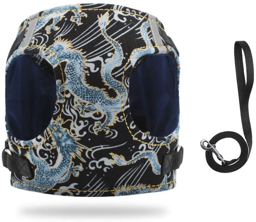 Dog Reflectorized Harness Set Dragon Pattern Safety Vest Adjustable Harness Pet Training Accessories