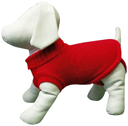 AMAZING PET PRODUCTS Dog Sweater Color: Red Size: 16 Solid color dog sweater. 100% Acrylic. Machine washable. Large selection of sizes. Size equals inches measured from base of neck to base of tail.