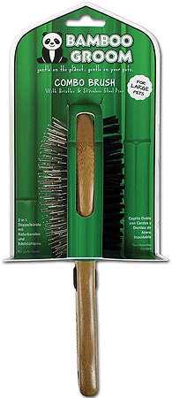 Bamboo Groom Combo Brush with Bristles & Stainless Steel Pins Large This dual-purpose brush works best on pets with short to medium coats. The rounded pins of the brush gently detangle fur and remove the undercoat. The soft bristles of the brush remove loose hair and debris from the top coat....