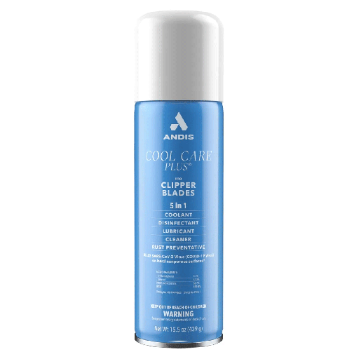 ANDIS Cool Care Plus 15.5oz. Aerosol Can Features: Five-in-One formula is a coolant disinfectant lubricant cleaner and rust preventative Get clean cool lubricated blades in one easy step without removing them from the clipper! The disinfectant is a virucide fungicide batericide and tuberculocide...