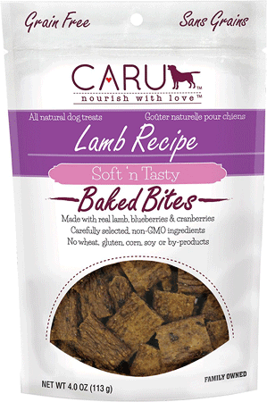 Soft n Tasty Baked Bites Lamb Recipe 4 oz Incredibly nutritious. Irresistibly delicious. Grain free. No GMO ingredients. At Caru were as passionate about the health and happiness of pets as you. Thats why we start with real meat or poultry as the first ingredient and why these award-winning Soft...