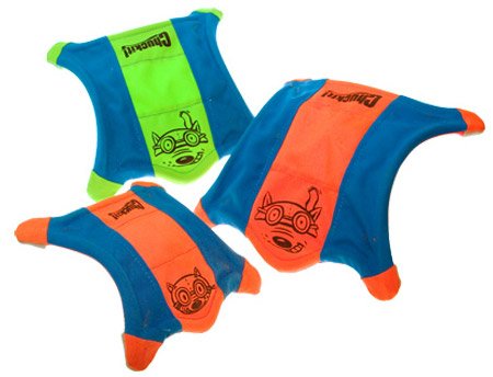 ChuckIt! Flying Squirrel Large 11 - Assorted Colors Raised sides for easy pickup Flies great Floats in water Glow in the dark paws Rugged multi-layer construction Sizes Available: Small - 9 x 9 x 3 Inches Medium - 10 x 10 x 3 Inches Large - 11 x 11 x 3 Inches