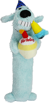 Birthday Loofa Dog 12 Blue Holding a birthday cake our Loofa Dog birthday is a gift that keeps on giving. Its time to party with the Loofa Dog Birthday dog toy! These extra long plush dog toys feature pups decked out in birthday hats holding their very own birthday cakes! What better way to...
