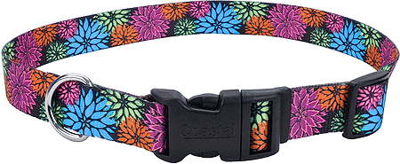 Styles Adjustable Collar 5/8 x 10-14 Wild Flower The Styles Adjustable Dog Collar is smooth and comfortable and features fun fashionable sublimated pattern collars have color coordinated hardware and feature a contoured snap-lock buckle for comfort and ease of use. Sublimated pattern printed on...