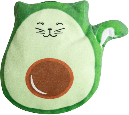 Avocato Plush Dog Toy Size: 9 Meet Avocato she is is half Avocado and half cat but she is 100% fun! Toy contains crinkle & squeaker.