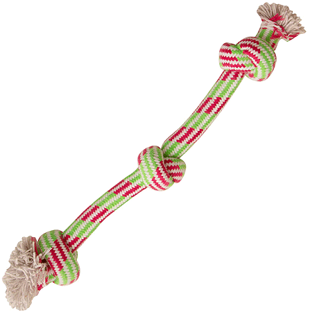 Knotty N Nice Assorted Colors Size: 16 The Knotty N Nice dog toy is ideally suited for a game of tug or toss-and-fetch. Made of non-toxic tightly braided cotton rope the Knotty N Nice has three knots that are great for your dog to chew or sink their teeth into during a game of tug. Three...