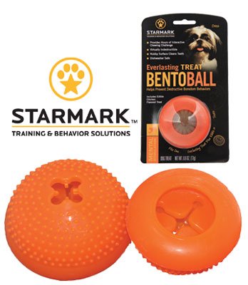STARMARK EVERLASTING BENTO BALL - LARGE ITS THE HALF BALL THATS TWICE THE FUN! THE EVERLASTING BENTO BALL CAN BE FILLED WITH FOOD EVERY FLAVOR TREATS OR ANY SNACK YOUR DOG ENJOYS AND THEN CAPPED WITH ONE EVERLASTING TREAT. EVERLASTING TREATS CAN BE INSERTED UPSIDE DOWN OR INTO THE CENTER CAVITY...