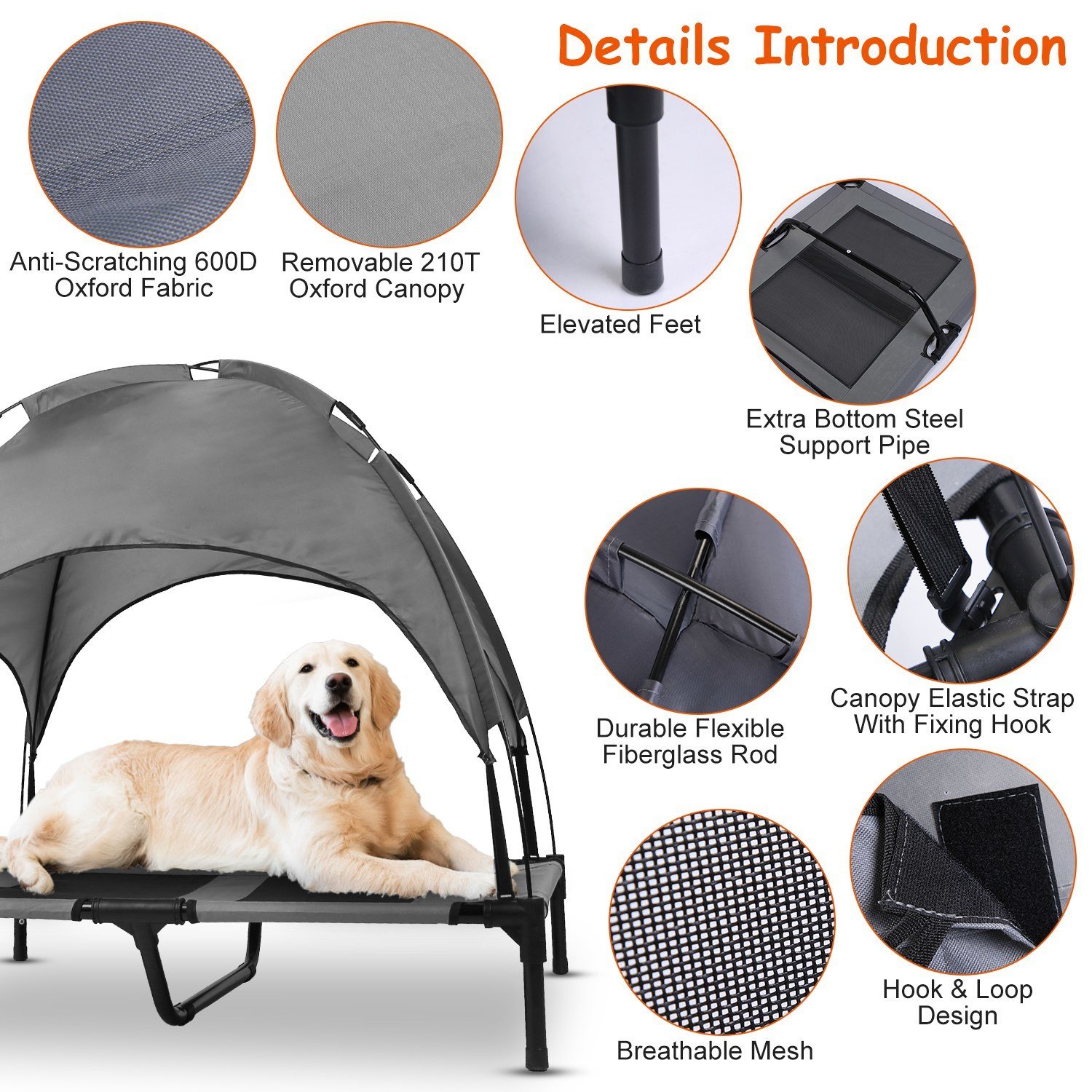 Home > Outdoor Elevated Dog Bed Cooling Raised Pet Cot Canopy Shade Tent Pet Cooling Bed with Removable Canopy for Outside Yard Camping Beach